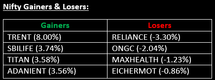 Bank Nifty: Opened 198.85 points higher at 51,747.60, reached a high of 52,704.55 and closed at 52,609.10.