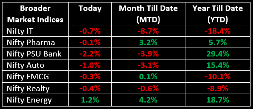 The Nifty PSU Bank index fell 2.15% and all Bank Nifty constituents closed in the red, with the sole exception of Kotak Mahindra Bank.