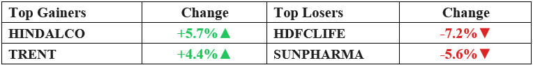 - Hindalco Industries: Led the metal pack as global aluminium supply constraints pushed prices higher.