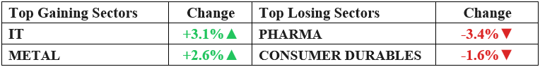 - Pharma and Consumer Durables saw significant selling pressure.