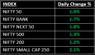 After two sessions of heavy selling, Indian markets bounced back with a relief rally, supported by easing geopolitical concerns. The market breadth remained strong as the total market cap of BSE-listed firms increased by ₹6.5 lakh crore.