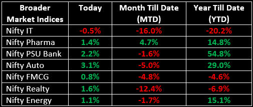 On the sectoral front, most indices closed in the green, while IT and Oil & Gas were the only sectors that ended the session in negative territory.