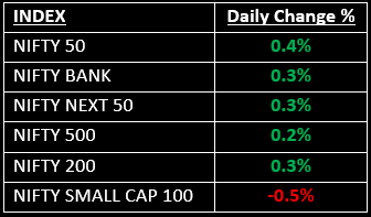 Broader indices, however, underperformed. The BSE Midcap index declined by 0.4%, while the BSE Smallcap index fell by 0.7%. Among sectors, Metal, PSU Banks, Financials and FMCG rose between 0.5% and 2%. In contrast, Pharma, Media and Realty saw declines ranging from 0.4% to 1.5%.