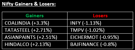 - Hindustan Zinc: Stock gained nearly 4% as silver prices rebounded after a sharp decline earlier in the week. As India's largest producer of silver, the company benefited from the recovery in silver prices.