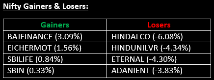 BANK NIFTY: The index opened 235.35 points lower at 60,504.40, reached a high of 60,621.90 and closed at 60,186.65. Bank Nifty formed a bearish candle with minor upper and lower shadows. Immediate resistance is placed at 60,400, with support around 60,000.