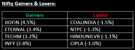 - Hexaware Technologies: Stock rose more than 7% following the launch of Agentverse, an enterprise AI platform offering 600+ ready-to-deploy AI agents, strengthening its AI positioning.