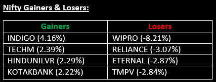 - Wipro: Stock plunged 8% after the IT major reported a 7% decline in Q3 profit, which slipped to ₹3,119 crore, despite steady revenue growth.