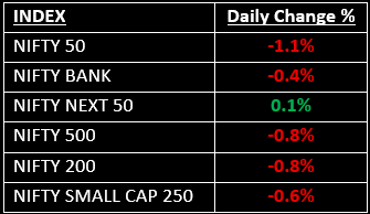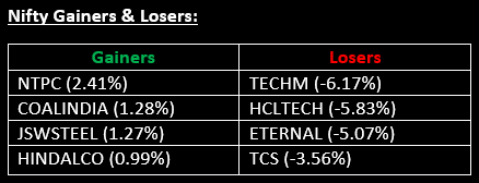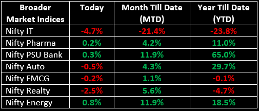 The broader market also ended in the red, with the Nifty Midcap index down 0.3% and the Smallcap index declining 0.55%. On the sectoral front, IT emerged as the worst performer, plunging over 4.5%, followed by Realty which fell 2.5%.