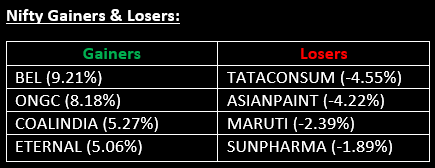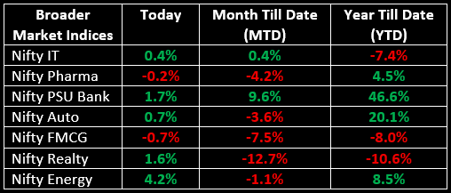 On the sectoral front, Media, Metal, Energy, Oil & Gas, Realty and PSU Bank indices saw gains of 1.5-4%, while FMCG, Pharma and Healthcare sectors ended lower.