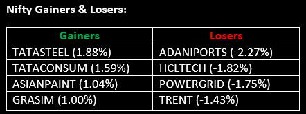 - Vikran Engineering: Stock gained 2.5% after the company secured Letters of Award for the establishment of 45.75 MW grid-connected solar power projects in Madhya Pradesh.