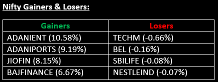 - Adani Enterprises: Stock advanced more than 10%, making it the top gainer in the Nifty 50. Adani Group companies were seen as key beneficiaries of the India–US trade developments, which lifted overall investor sentiment.