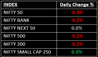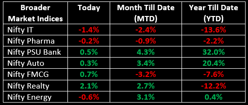Broader indices fared better, with the BSE Midcap and Smallcap indices closing with minor gains. On the sectoral front, Realty and Consumer Durables led the way, while IT and Oil & Gas emerged as the biggest underperformers.