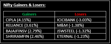 The Indian equity market wrapped up the final session of Samvat 2081 on a positive note, marking its fourth consecutive day of gains. Top Gainer: CIPLA |Top Loser: ICICIBANK