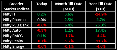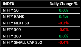 On the sectoral front, except Media, Financial Services, IT, Private Banks and FMCG, all other sectors ended in the red. The Nifty Bank index surged to a fresh record high of 59,866.60, closing 0.35% higher. The Nifty Midcap 100 also touched a new record high, settling with minor gains, while the Nifty Smallcap index lost 0.5%.