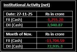 Indian equity indices reached fresh record highs on November 27, 2025, surpassing the previous peak touched on September 27, 2024. The market traded in positive territory, driven by rising expectations of rate cuts from both the Federal Reserve and Reserve Bank of India in their upcoming December policy meetings, as well as optimism surrounding a potential Russia-Ukraine peace deal.