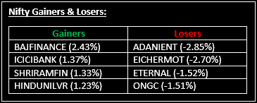 Indian equity indices reached fresh record highs on November 27, 2025, surpassing the previous peak touched on September 27, 2024. Top Gainer: BAJFINANCE |Top Loser: ADANIENT