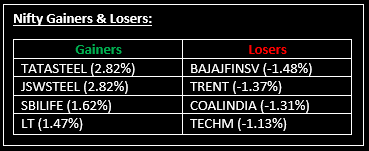 Indian benchmark indices remained under pressure on October 28, weighed down by broad-based selling across sectors except metals and banking. Top Gainer: TATASTEEL |Top Loser: BAJAJFINSV