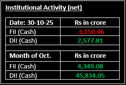 ▪ Aditya Birla Capital: Stock jumped over 5% after reporting a 22% YoY rise in AUM to ₹1.39 lakh crore and a 29% YoY expansion in its loan book to ₹1.78 lakh crore in Q2 FY26.