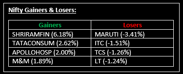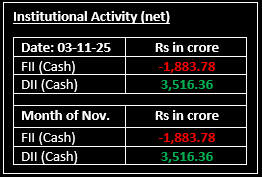 Indian benchmark indices ended marginally higher in a rangebound session on November 3. Large-cap shares underperformed, while the midcap index reached a 52-week high. Top Gainer: SHRIRAMFIN |Top Loser: MARUTI