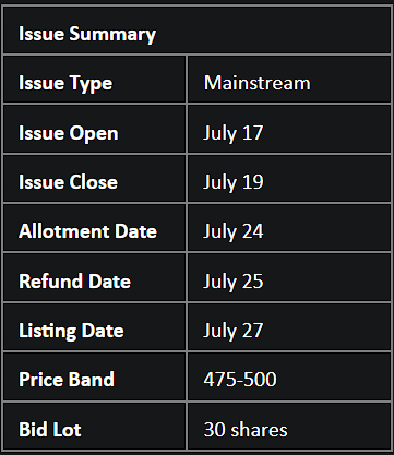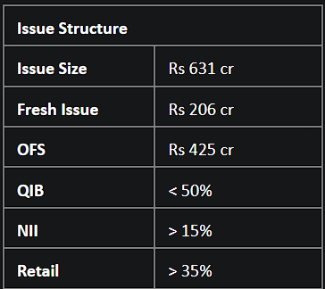 The IPO consists of a fresh issue of shares worth Rs 206 crore and an offer-for-sale of up to 85 lakh shares by its existing promoters and shareholders. The price band is fixed between Rs 475-500 per share, with a minimum bidding size of 30 shares.