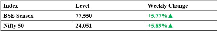 The Indian stock market finally broke its six-week losing streak in spectacular fashion, recording its most significant weekly surge in five years.