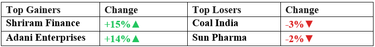 - Adani Enterprises: Gained 13.8% after a US court dismissed a pending SEC case, clearing a major regulatory hurdle.
