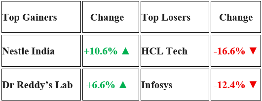 - HCL Tech: Crashed 16.6% after reporting weaker-than-expected results leading to brokerage downgrades.