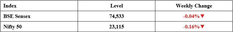 Executive Summary: Indian equity markets ended the week with marginal losses, marking the fourth consecutive week of negative closings.