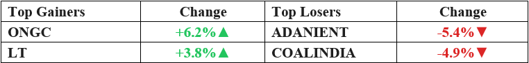- ONGC rose 6.2% last week, driven by its dominant position in domestic crude and natural gas markets, along with stable profitability and capex plans.