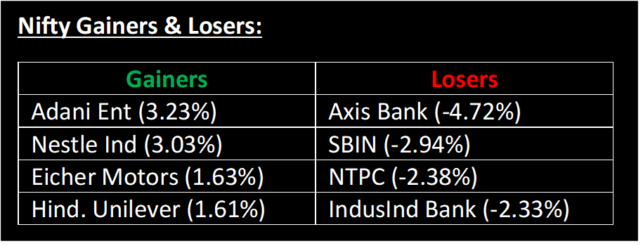 On October 4, the Nifty experienced its second consecutive day of declines, influenced by unfavourable global indicators and ongoing foreign institutional investor (FII) divestment. Top Gainer : Adani Ent | Top Loser : Axis Bank