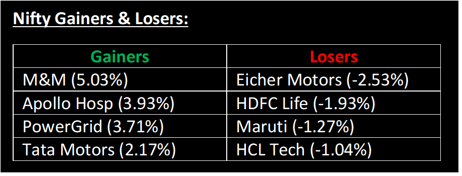 ▪ Adani Green: Stock gained 1.48% after the company's board approved the proposal to raise Rs 12,3000 crore through the QIP route.