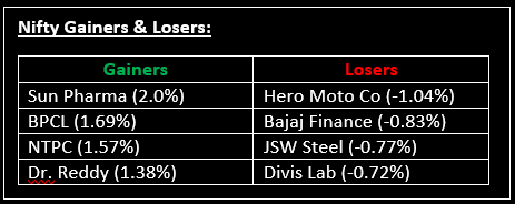 ▪ Gujarat State Petronet: Stock jumped 2.35% post registering robust profit growth of 36% on a QoQ basis to Rs 590 crore.