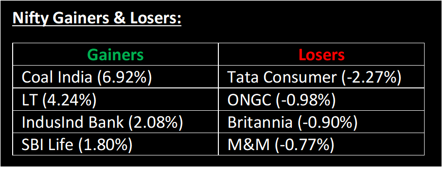 ▪ United Breweries Ltd: Stock jumped over 5% after the alcoholic beverages’ maker announced the appointment of Vivek Gupta as the new Managing Director and Chief Executive Officer.