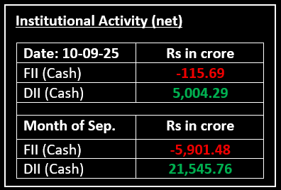 On September 10, Indian benchmark indices extended their gains from the previous session, with Nifty crossing the 25,000 mark intraday. The rally was led by IT, financial and realty stocks. However, profit-booking in the auto and media sectors offset some of the intraday gains.