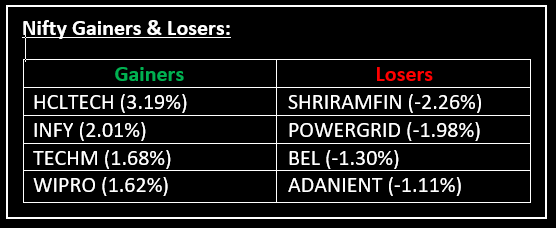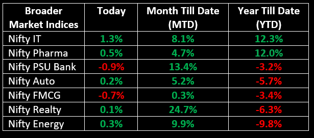 Sector-wise, FMCG and and PSU Banks saw a decline of 0.5-1%, while Oil & Gas, Pharma, and IT stocks gained 0.5-1.5%.