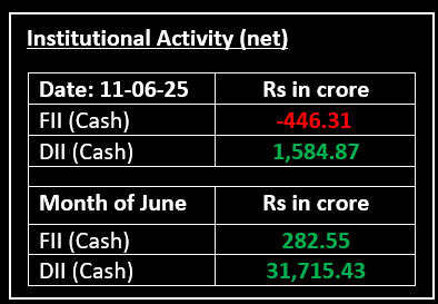 On June 11, the bulls returned, pushing Nifty to cross 25,200 intraday for the first time since October 15, 2024. The markets started the day on a muted note but surged higher later in the day, driven by strength in IT stocks. Top Gainer: HCLTECH | Top Loser: SHRIRAMFIN