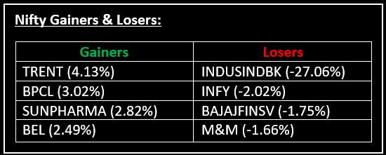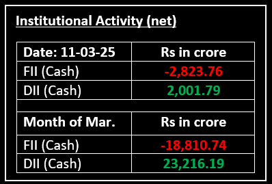 On March 11, Indian equity indices ended on a flat note after a volatile session. Top Gainer: TRENT | Top Loser: INDUSIND