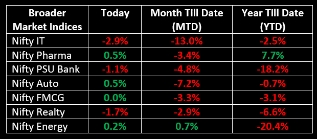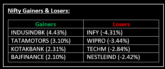 On March 12, in a highly volatile session, benchmark indices Sensex and Nifty ended marginally lower as gains in banking and automobile shares were offset by losses in the IT sector. Top Gainer: INDUSINDBK | Top Loser: INFY