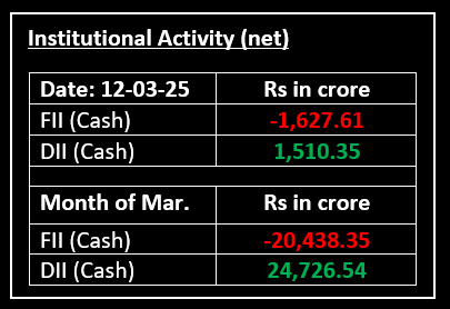 On March 12, in a highly volatile session, benchmark indices Sensex and Nifty ended marginally lower as gains in banking and automobile shares were offset by losses in the IT sector. Global markets have been volatile, with the US President pressuring trade partners through tariff barriers. Auto and Pharma sectors emerged as top performers, while the IT sector saw a sharp decline of nearly 3%.