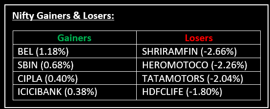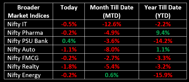On the sectoral front, auto, IT, metal, media, and realty declined 0.5-1% each, while the PSU Bank index gained 0.5%.