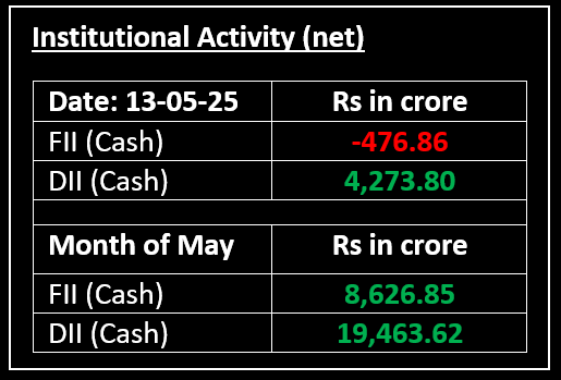 On May 13, benchmark indices faced a round of profit-booking, following the record rally from the previous day, with the Nifty 50 slipping below key levels. The momentum shift was driven by cautious market sentiment as traders took profits after a strong run.