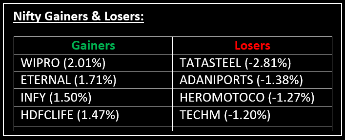▪ Infosys: Stock gained 1.5% following the announcement of the company acquiring a 75% stake in the Versent Group, a wholly-owned unit of Australia's Telstra Group, for approximately Rs 1,300 crore.