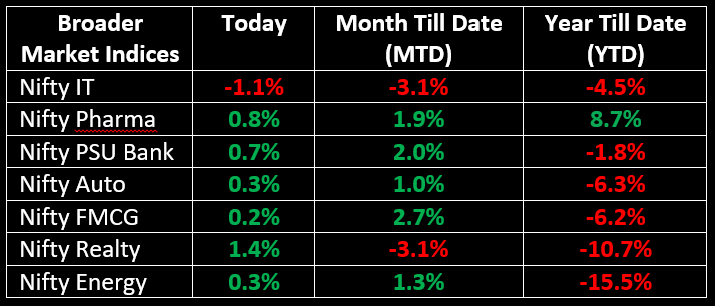 Among the sectors, the IT index shed 1% and the Financial Services index slipped 0.2%. Meanwhile, sectors such as PSU Bank, Pharma, Consumer Durables, Media and Realty saw gains between 0.7% and 1.4%.