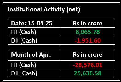 On April 15, benchmark indices continued their upward momentum for the second consecutive session, recovering all the losses incurred since the April 2 tariff announcement by US President Trump. Top Gainer: INDUSINDBK | Top Loser: ITC