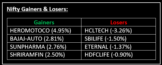 On July 15, Indian benchmark indices ended a four-day losing streak, with Nifty closing near 25,200. The rally was fuelled by India's June retail inflation easing to a 77-month low of 2.1%. Top Gainer: HEROMOTOCO | Top Loser: HCLTECH