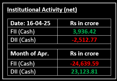 On April 16, benchmark indices moved higher, extending their gains for a third consecutive session. After a rangebound first half, the rally was fuelled by reports that China is open to trade talks with the US.