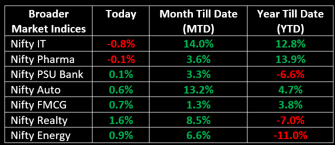 In terms of sector performance, media, power, PSU, realty and capital goods indices gained between 1% and 1.7%, while the IT index declined by nearly 1%.