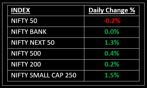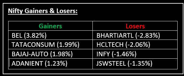 On May 16, Indian equity indices came under pressure following a seven-month high in the previous session. Top Gainer: BEL | Top Loser: BHARTIARTL
