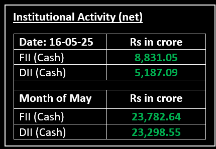 On May 16, Indian equity indices came under pressure following a seven-month high in the previous session. The market experienced intermittent corrections despite maintaining an overall positive sentiment, supported by easing geopolitical risks, stable Q4 results and a strong macroeconomic outlook. Read more: Inflation, India-US Trade Deals in Focus