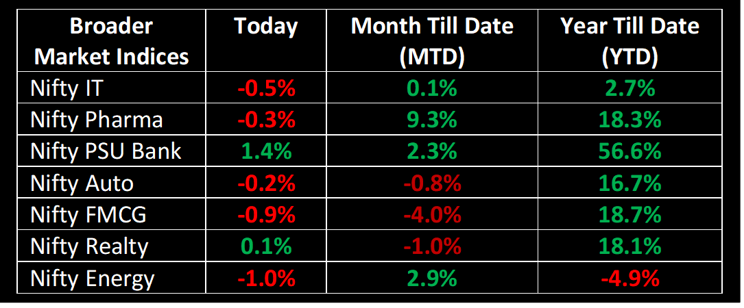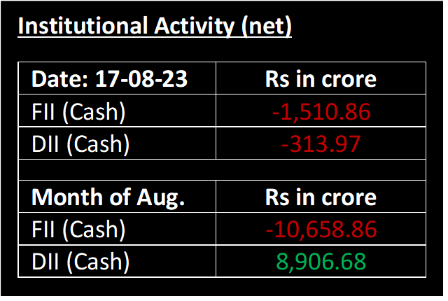 The Nifty ended the day below 19,400, driven by widespread selling across various sectors. The decline in today’s market was attributed to concerns about inflation and the influence of weak global indicators following the release of the US Federal Reserve meeting minutes. The suggestion of potential additional rate hikes in those minutes unnerved investors, contributing to their apprehension.